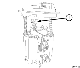 2. Gently push the fuel level sending unit down until the snap tab (2) engages.