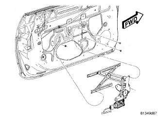 The window regulator modules are directly connected to each of the front door window regulator motors. The window switches are hard wired by a mux circuit to the respective window regulator module. The respective rear window motor is hard wired to the module. The front window motor is directly attached to the module. Both front door window switches have the express down feature. The module will cease lowering the front glass when a fully down position is sensed through the hall effect sensor.
