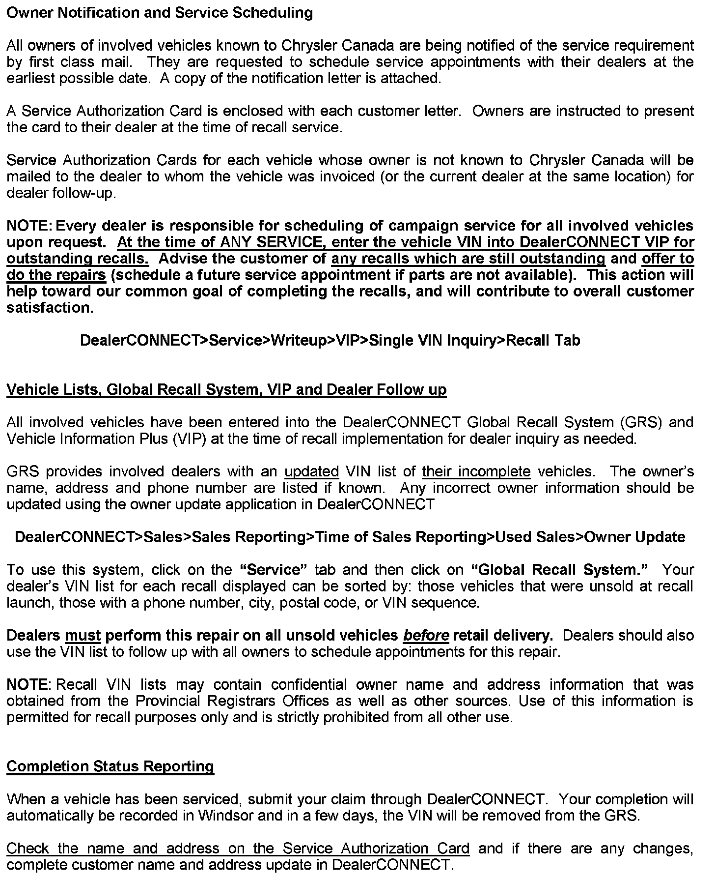 This Canadian Recall Notification can also be found in DealerCONNECT - See below: