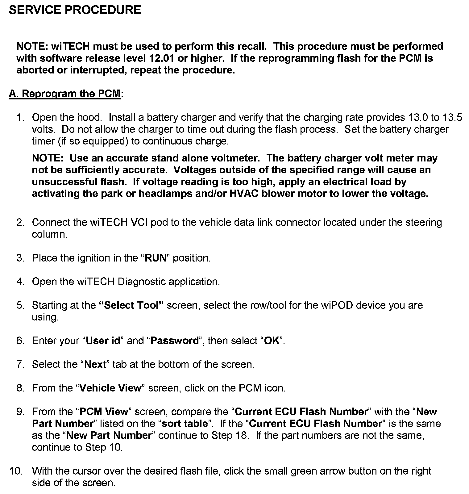 ^ To correct this condition, the Powertrain Control Module (PCM) must be reprogrammed (flashed).