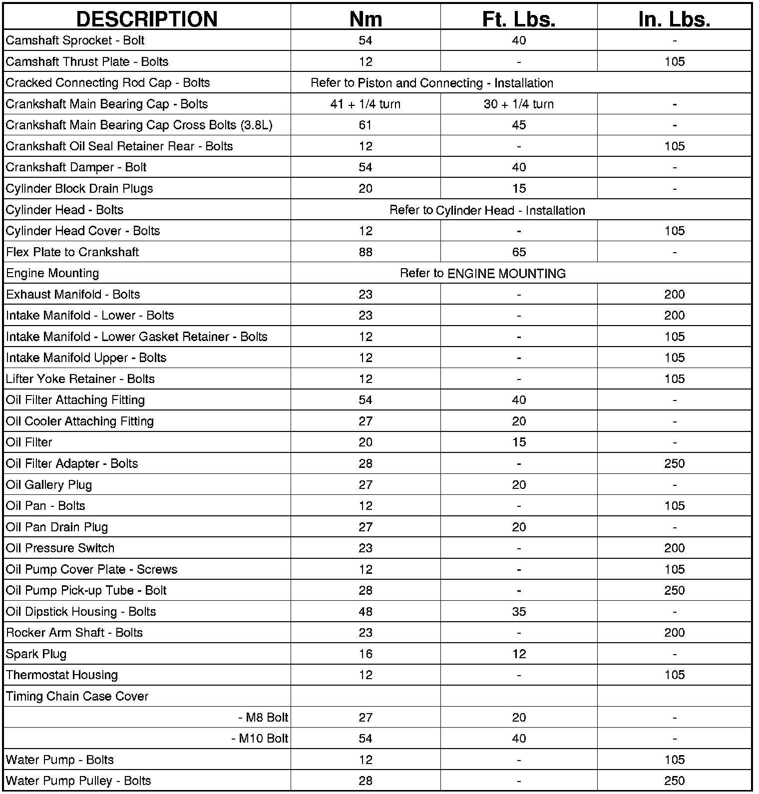 Engine Torque Specifications