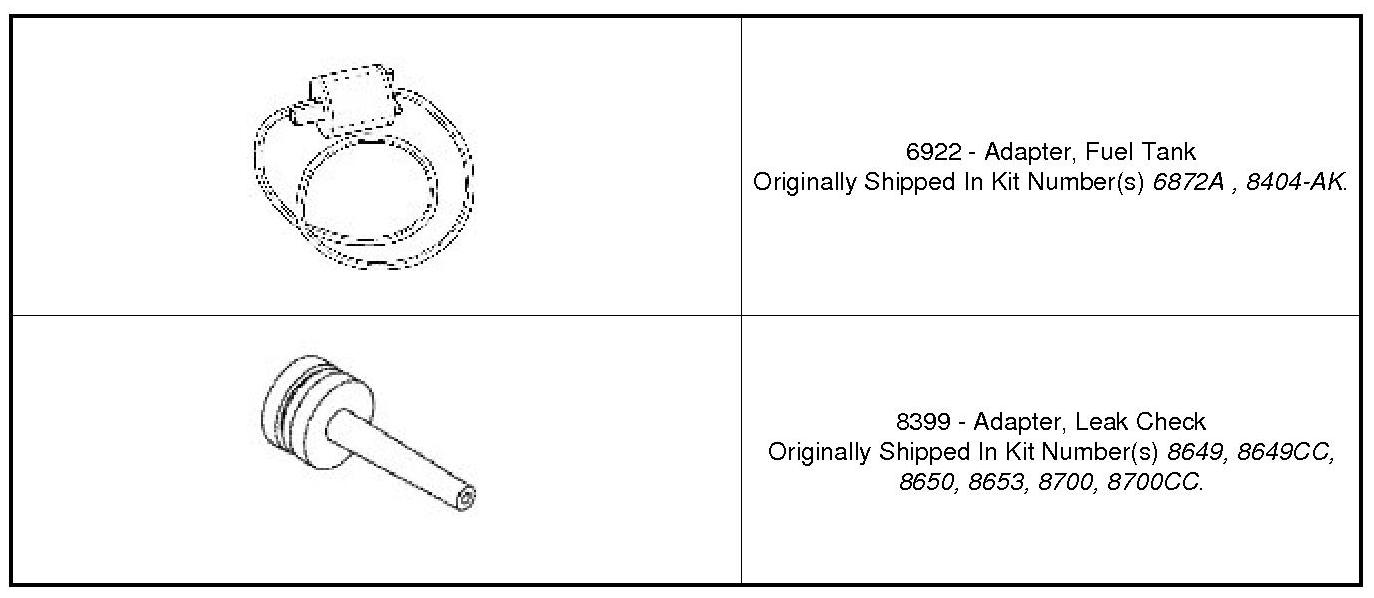 2. Install leak check adapter (1/4 turn cap) or fuel tank adapter (screw cap) and leak check adapter (secondary seal depressor) and repeat test 4.