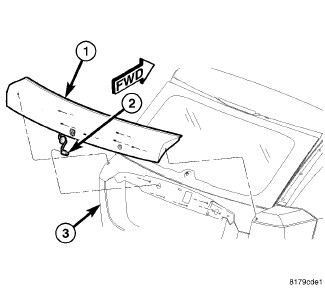 8. Install the liftgate spoiler (1), Liftgate Spoiler - Installation.