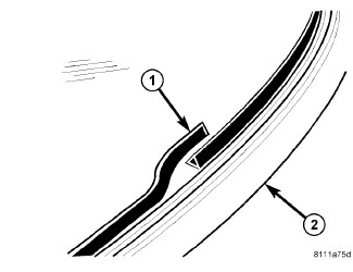 2. Level old bead of liftgate opening adhesive (1) to a thickness of approximately 1 mm (0.04 in.) and remove loose adhesive.