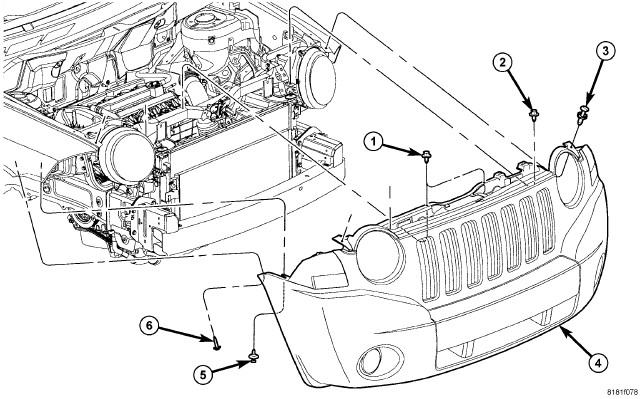 6. Install the fender to fascia fasteners (5 and 6).