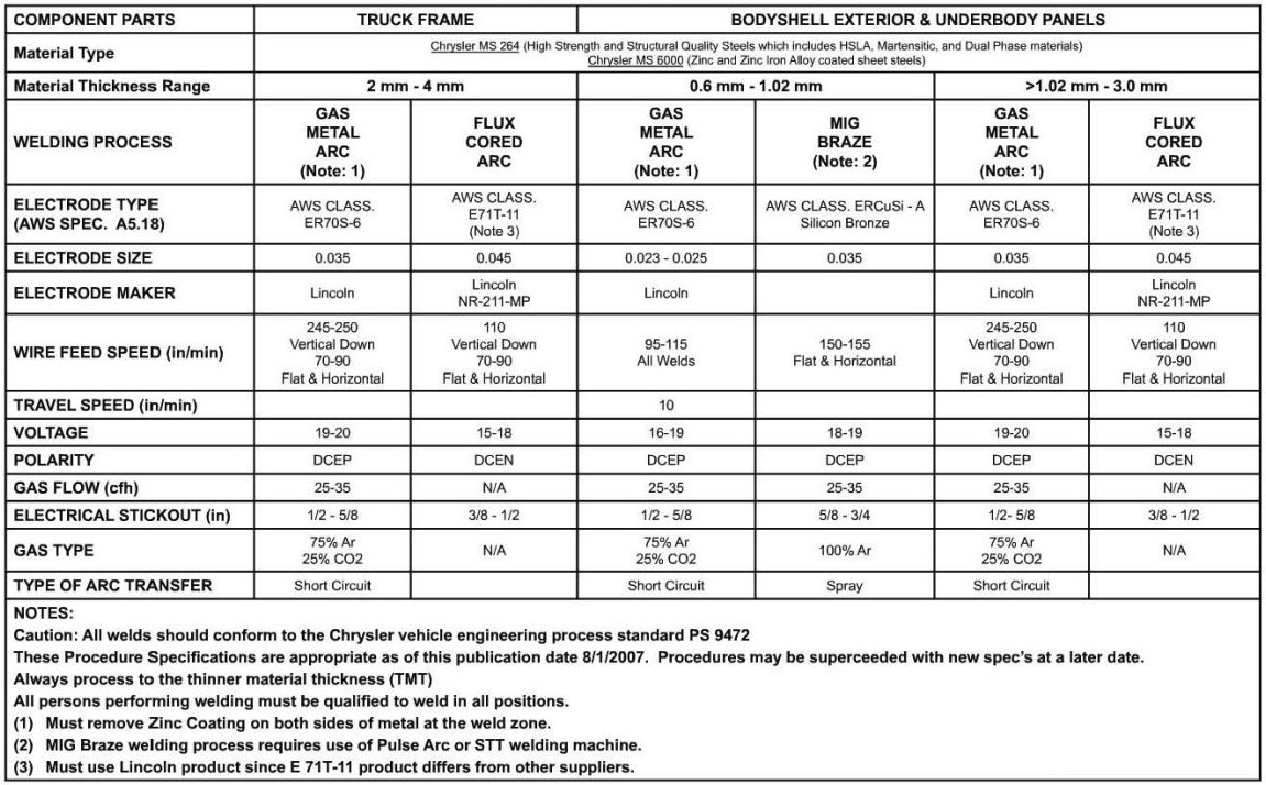 COLLISION AND FIELD REPAIR FUSION ARC WELDING PROCEDURE SPECIFICATIONS