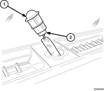 2. Align the tab on the sun sensor (1) with the slot in the opening in the defroster grille (2) and install the sensor onto the grille. Make sure that the sensor is fully engaged to the defroster grille.