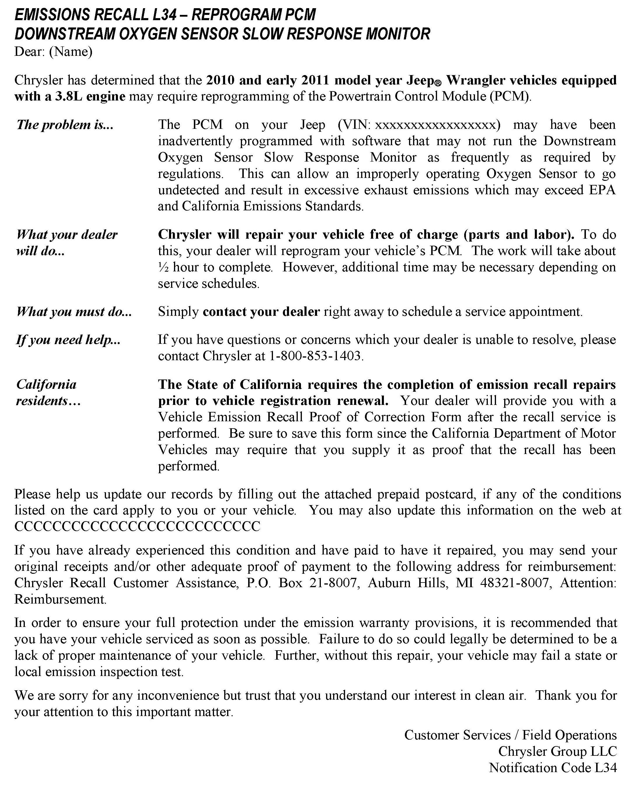 Recall - ECM Update For Downstream O2 Sensor Monitor