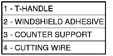 6. Using a windshield cut-out wire (4) or other suitable tool, separate the adhesive (2).