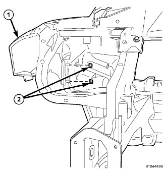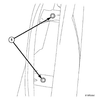 1. Loosely install the two upper bolts (2).