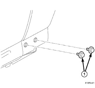 3. Install the two lower bolts (1) next to the door, loosely.