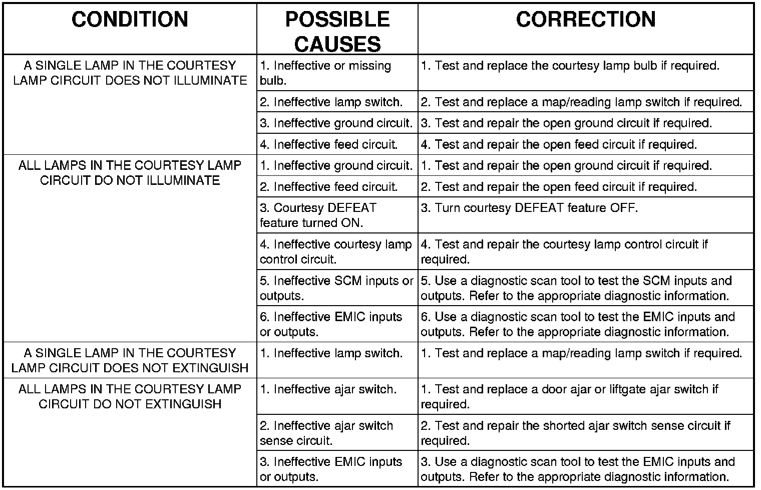 DIAGNOSIS AND TESTING - LAMPS/LIGHTING - INTERIOR