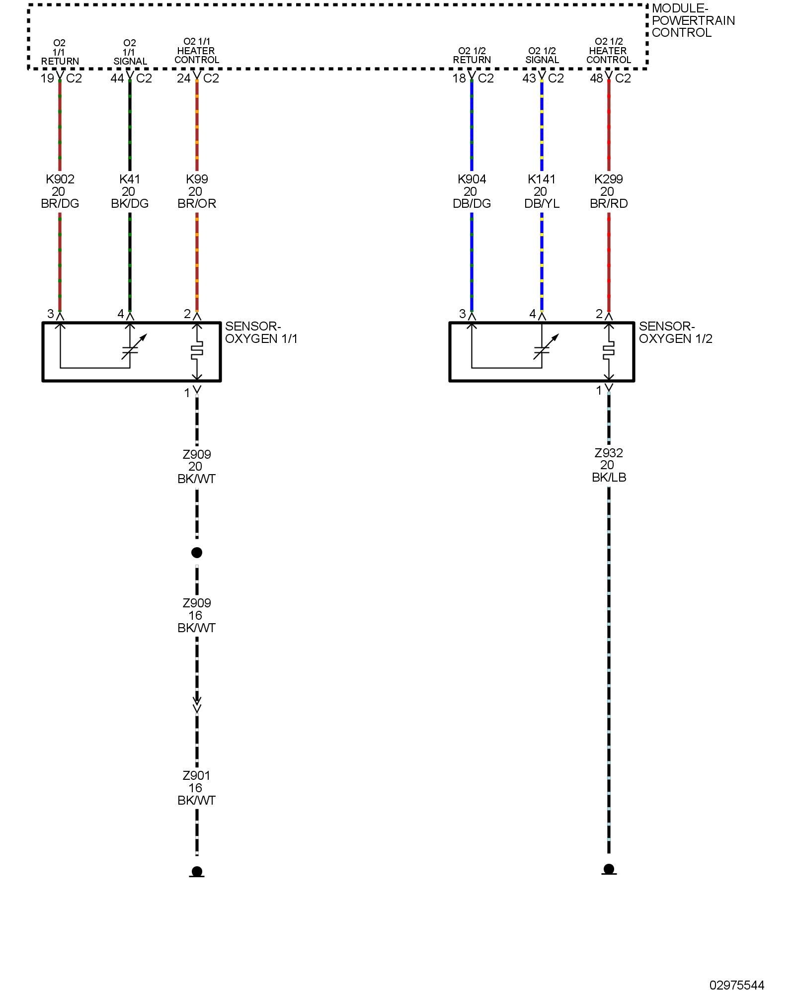 1. Using the wiring diagram/schematic as a guide, inspect the wiring and connectors between the O2 sensor and the PCM.