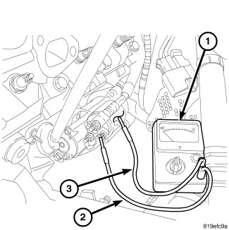 3. Check for continuity between solenoid terminal (2) and solenoid case (3). There should be continuity. If not OK, replace faulty starter motor assembly.