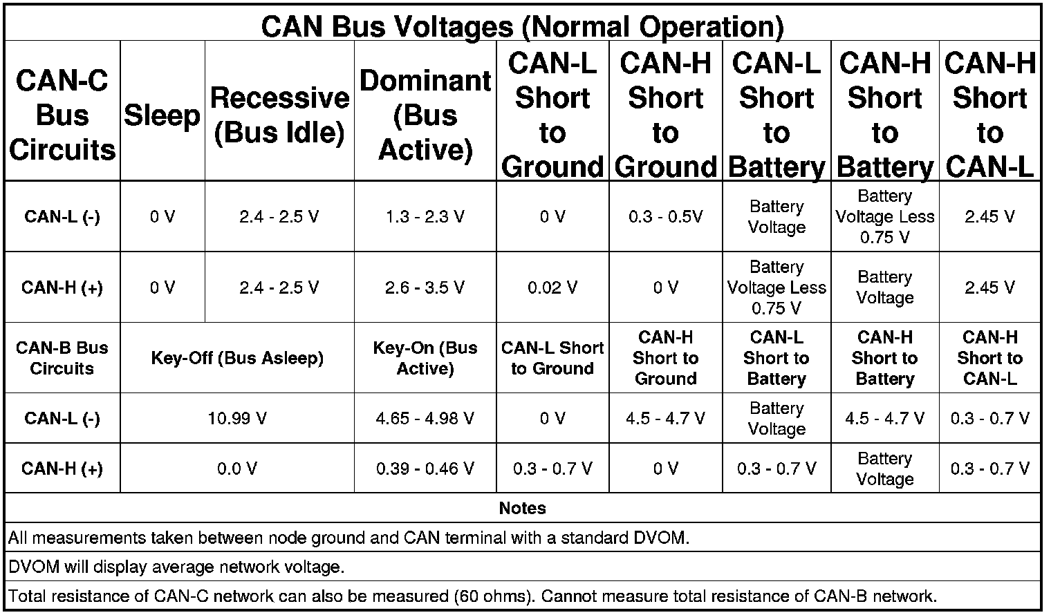 NOTE: Termination resistance of a CAN-B node cannot be verified with a Digital Multi-Meter (DMM) or Digital Volt-Ohm Meter (DVOM). The transceiver of each CAN-B node connects to termination resistors internally. When the vehicle battery is disconnected, the internal connections of all CAN-B node transceivers are switched open, disconnecting the termination resistors. Therefore, the total bus resistance measured under these conditions will be extremely high or infinite, which does not accurately reflect the actual termination resistance of the CAN-B bus.