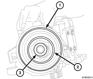 21. Install the output shaft nut (1) onto the output shaft (2).