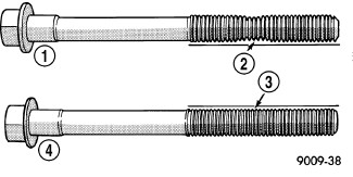 The cylinder head bolts are tightened using a torque plus angle procedure. The bolts must be examined BEFORE reuse. If the threads are necked down the bolts should be replaced.