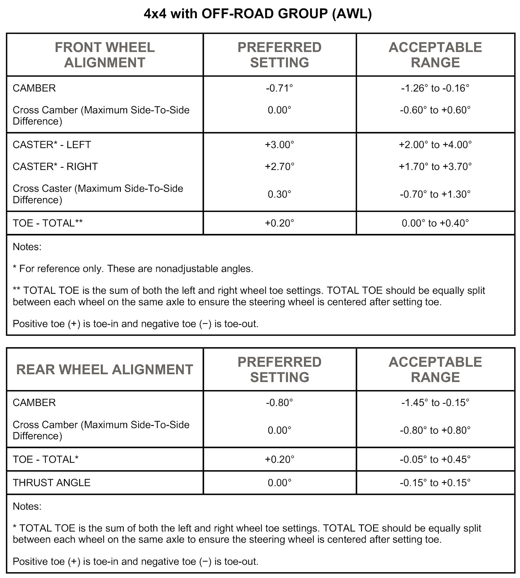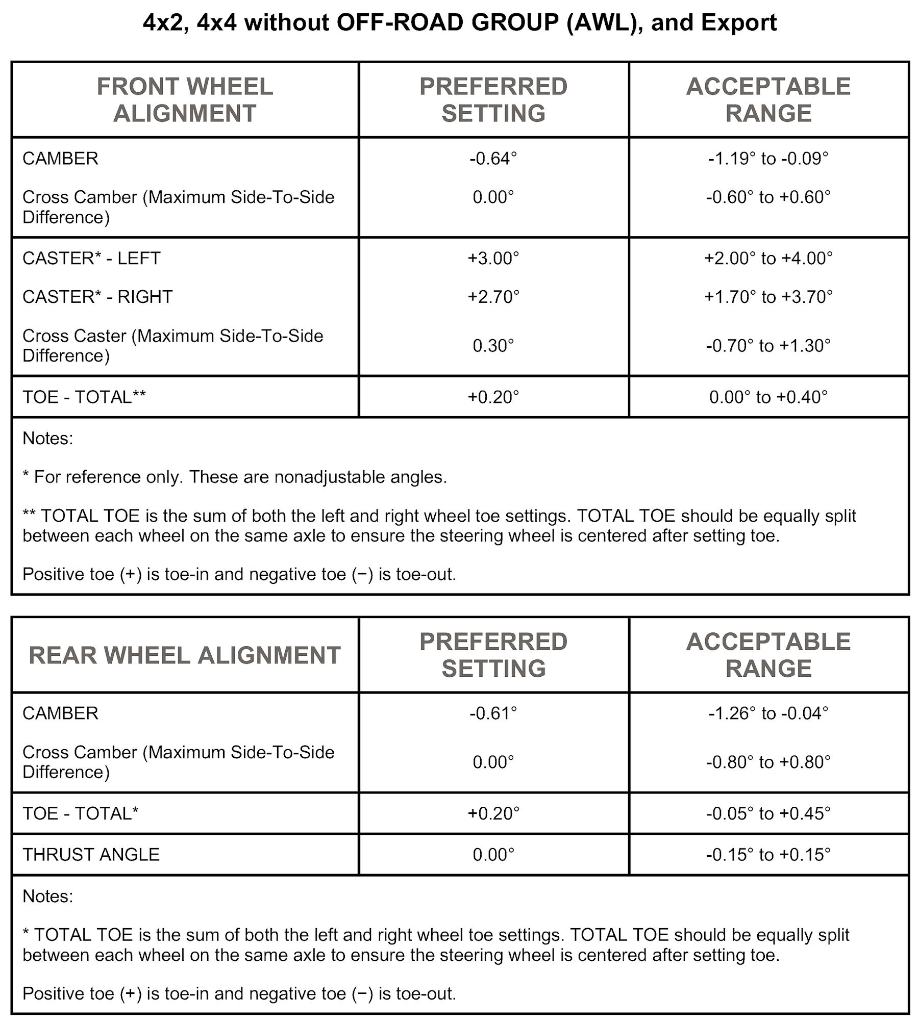 4x2, 4x4 Without OFF-ROAD GROUP (AWL), And Export: