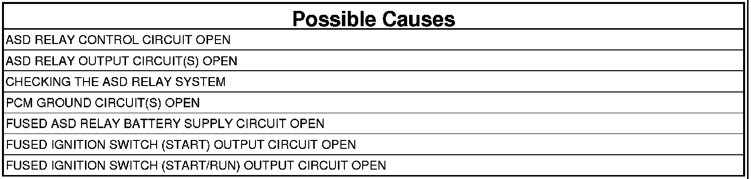 - Repair the Fused ASD Relay Battery Supply circuit for an open.