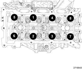 Tighten the cylinder head bolts in the sequence shown, following this 9 step torque plus angle method. Tighten according to the following torque values: