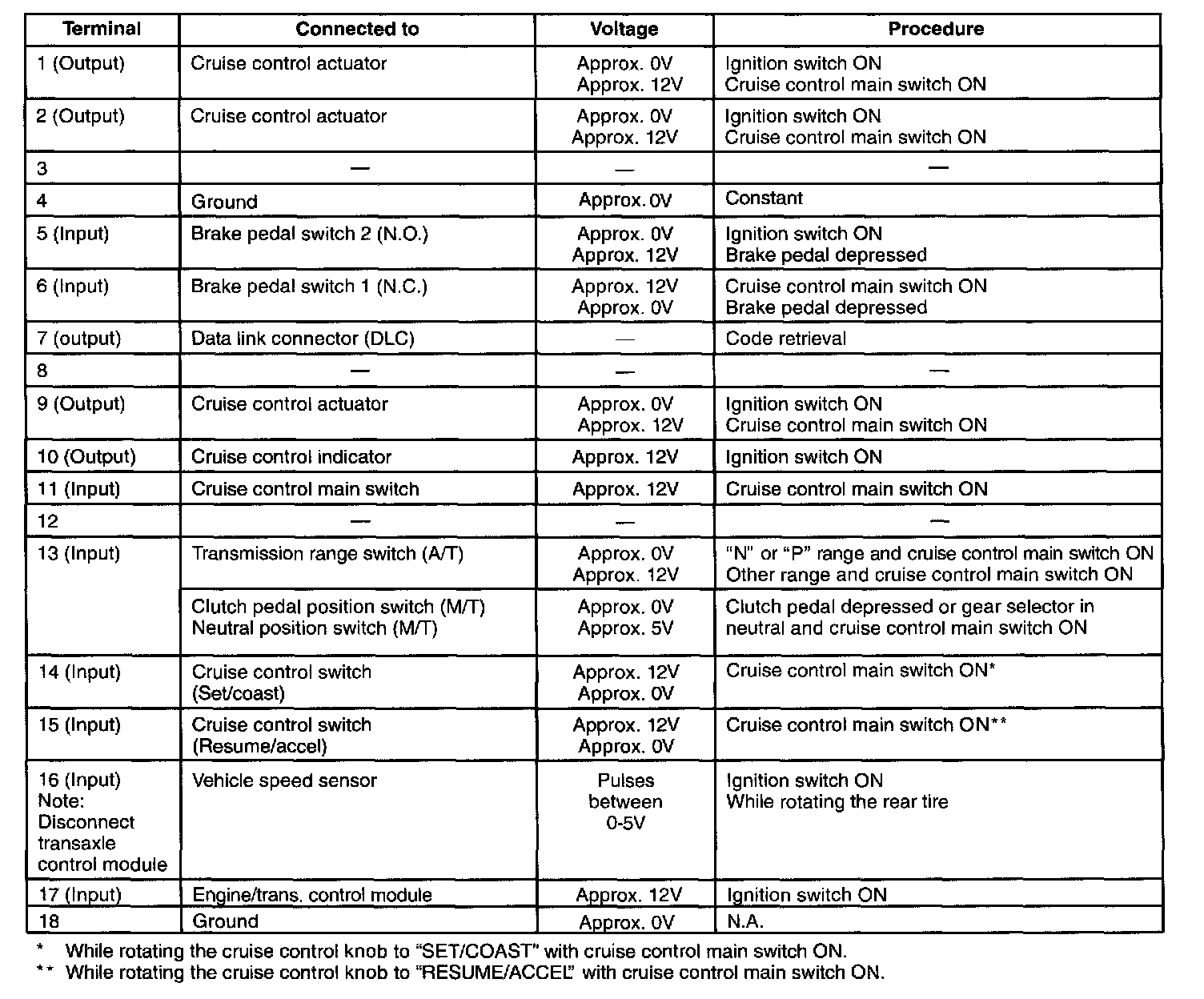 Home >> Kia >> 1997 >> Sportage 2WD L4-2.0L >> Repair and Diagnosis >> Cruise Control >> Cruise Control Module >> Testing and Inspection