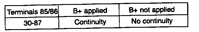 5. Apply battery voltage (B+) to terminal 85 and ground terminal 86 of the relay.