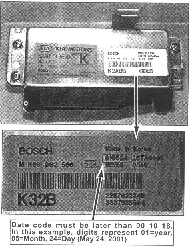 2. If vehicle's production date is 10/18/00 or later, vehicle has correct TCM - NO TCM REPLACEMENT IS REQUIRED.