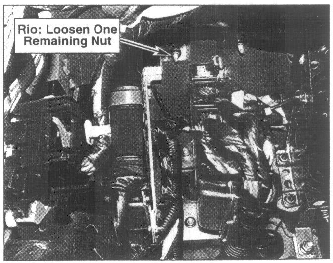 8. Rio only: Loosen and remove (1) remaining nut that secures TCM mounting bracket to firewall.