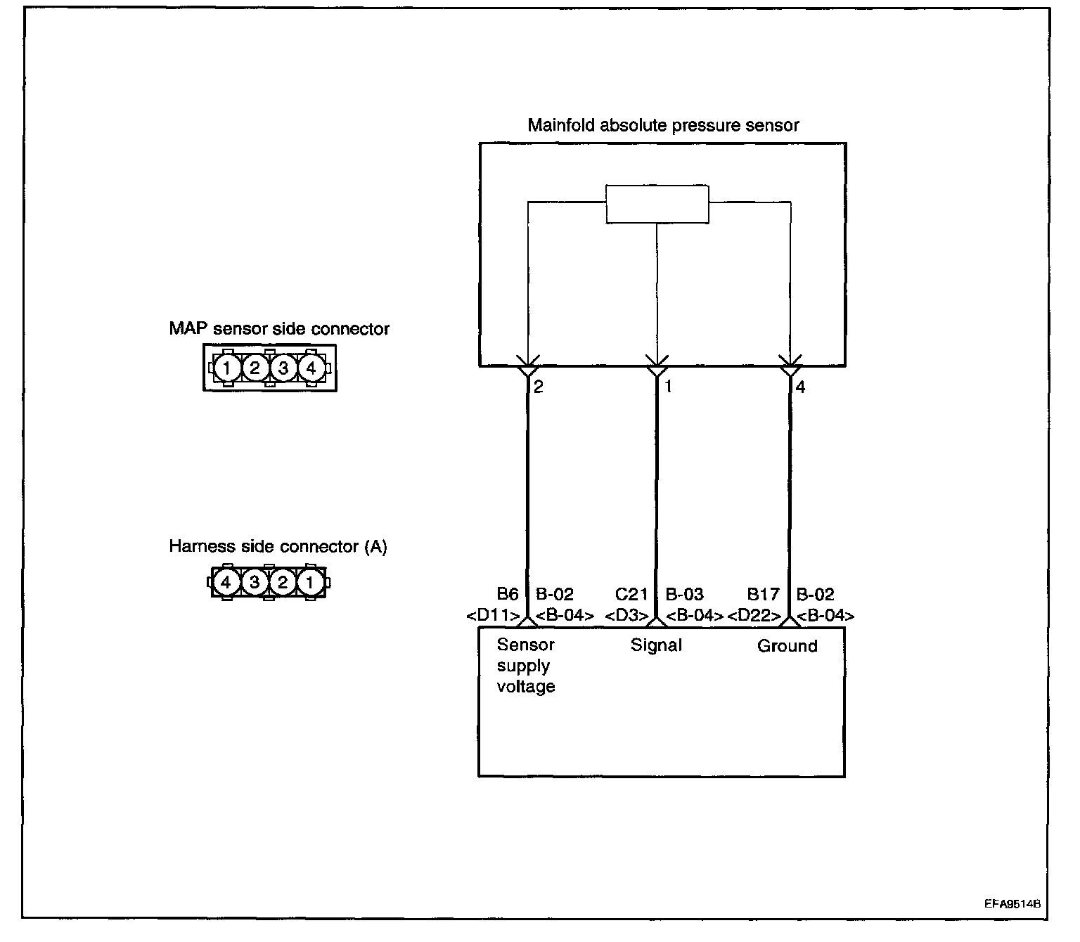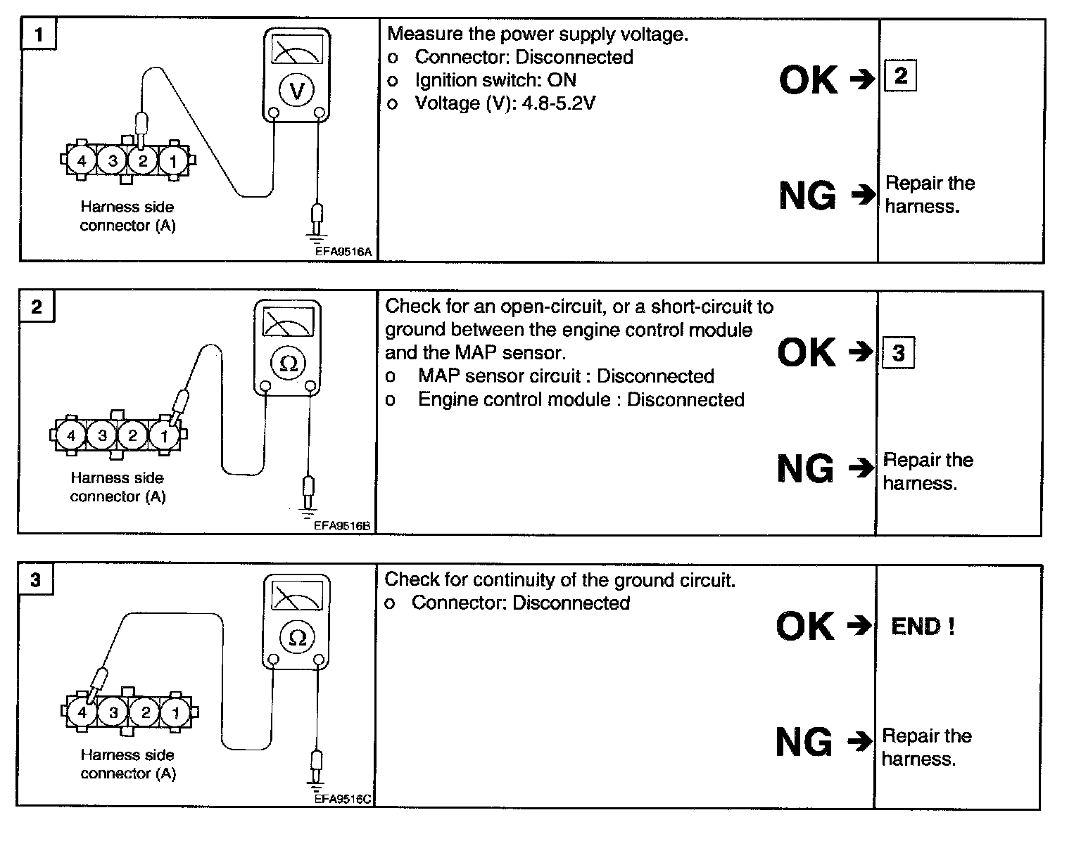 1. Connect the voltmeter between 1 and 4 of MAP sensor connector