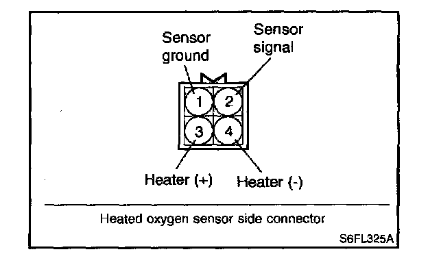 1. Disconnect the oxygen sensor connector, and measure the resistance between terminal 3 and terminal 4.