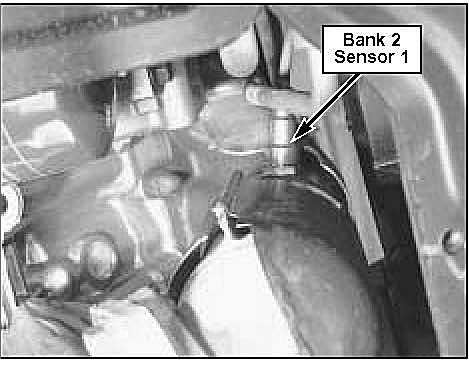 3. Disconnect bank 1 sensor 1 connector at rear corner of right cylinder head and remove connector from bracket.