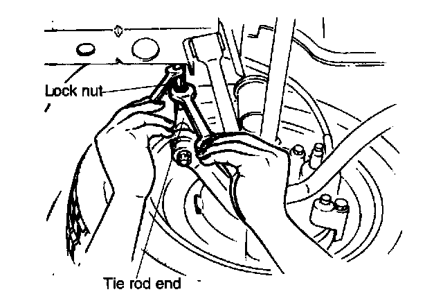 To adjust the toe-in, loosen the left and right tie-rod lock nuts and turn the tie-rods by the same amount.