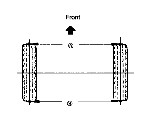 4. Measure the distance between the marked lines at the front and rear of the wheels. Both measurements must be taken at equal distances from the ground.