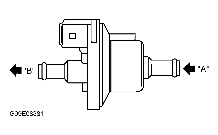 3. Remove PSV and supply battery voltage to one terminal and negative to the other terminal. A slight clicking noise should be heard from the PSV. With light pressure blow air into one of the ports, see Fig 1 . Check that air escapes from other port when energizing and de-energizing PSV. Purge solenoid valve is working properly, go to next step. PSV is not working properly, replace with known good PSV. If problem is corrected, replace PSV.