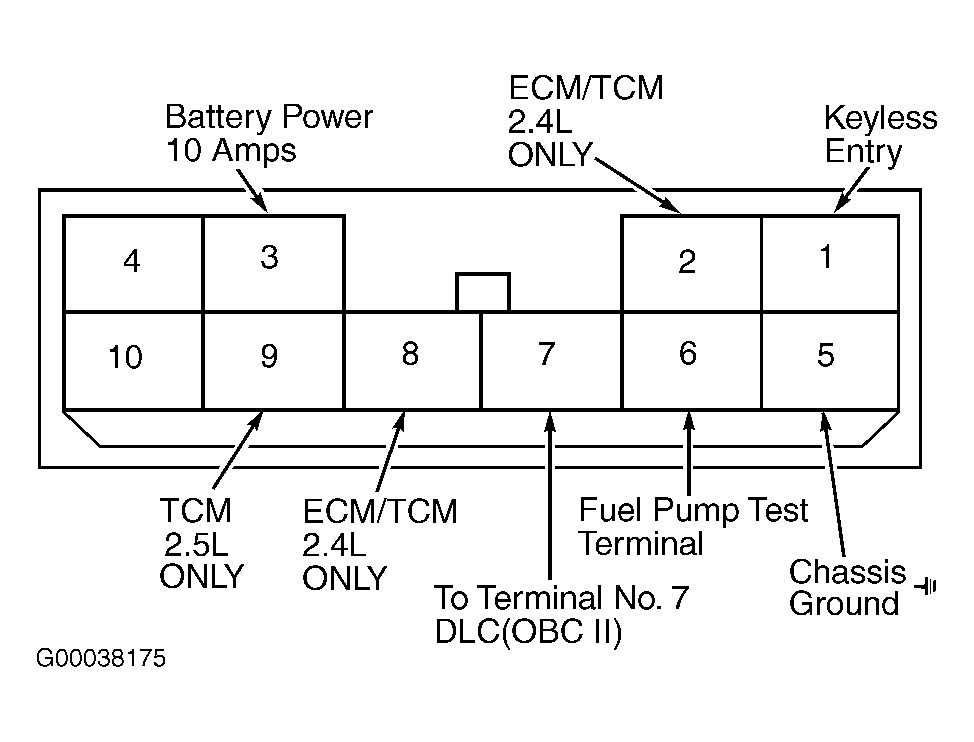 After performing any operation that requires releasing fuel pressure, fuel system should be primed to prevent long cranking times. To prime fuel system, jumper Data Link Connector (DLC) terminal FUEL PUMP and B+. DLC is located on left side of engine compartment. See Fig 1 and Fig 2 . Turn ignition on for no longer than 10 seconds to run pump and pressurize fuel system. Turn ignition off and remove jumper wire. Check for leaks. Repair any leaks as necessary.
