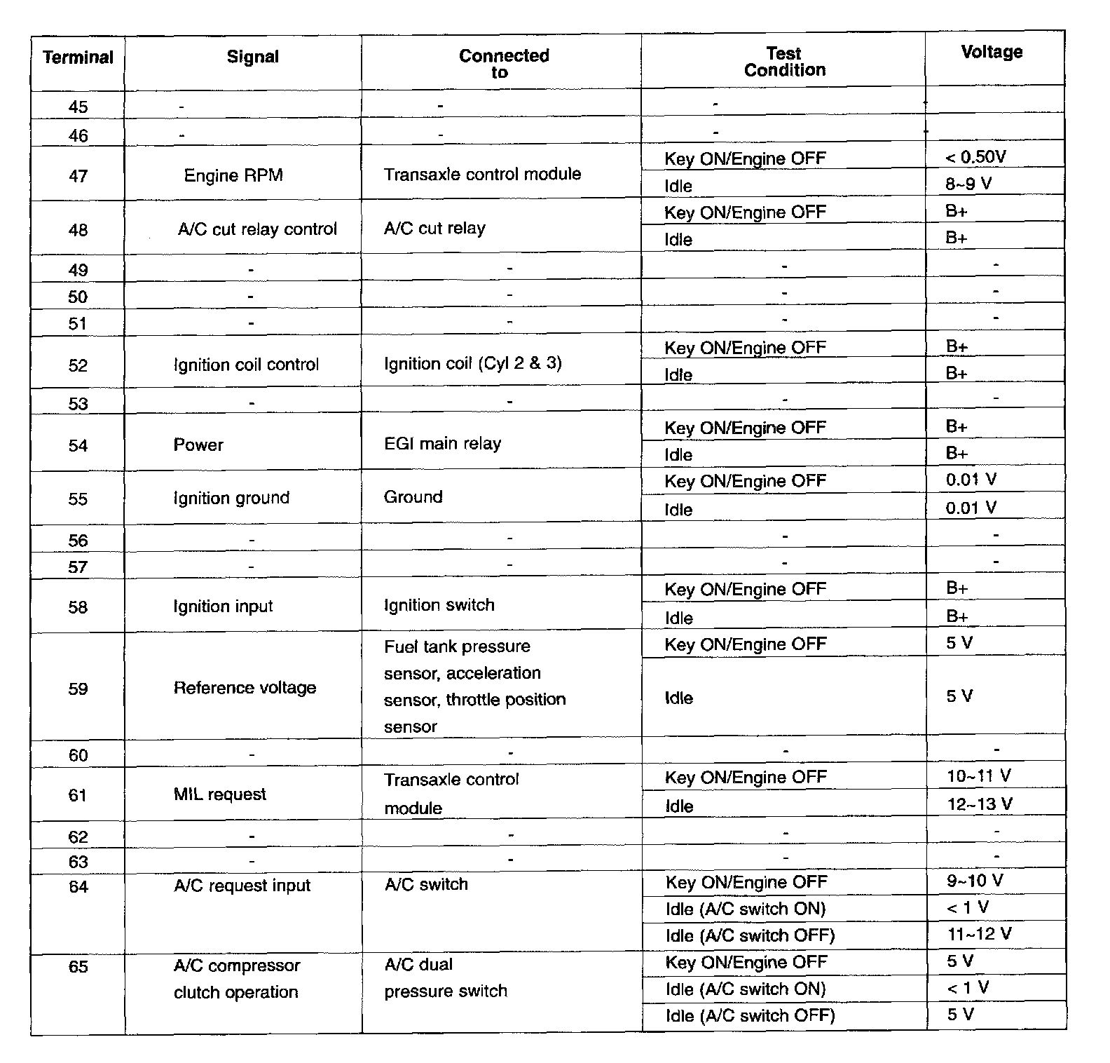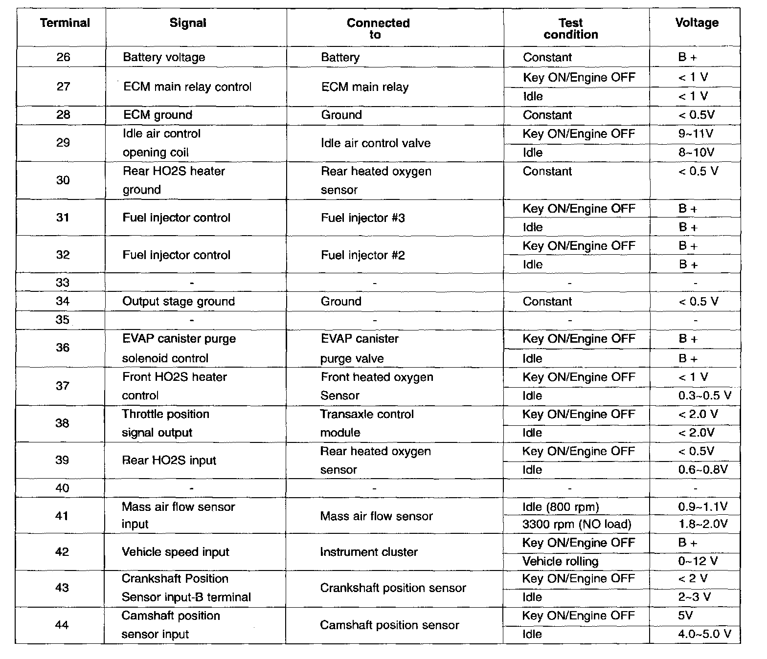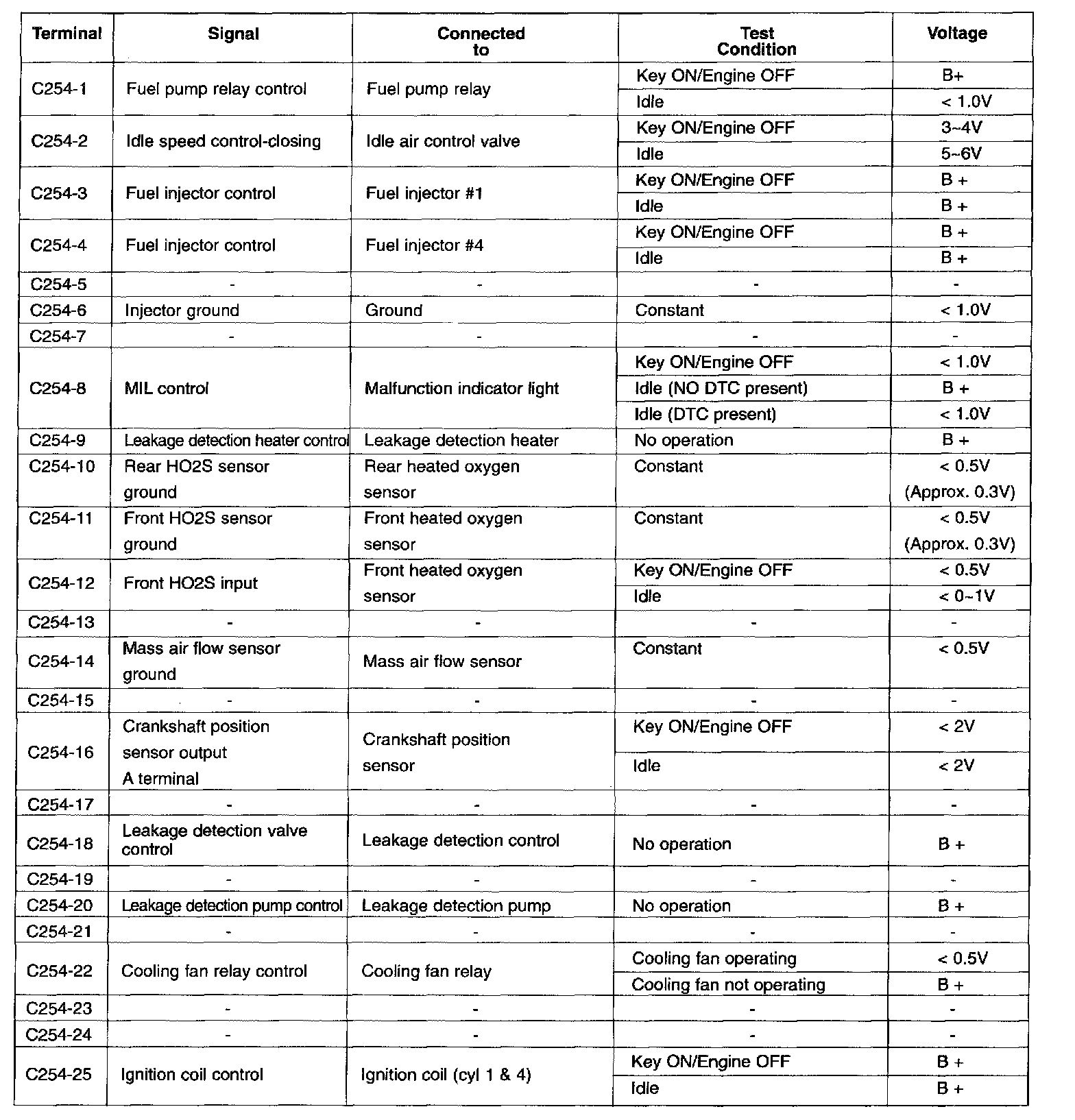 ECM Terminal Voltage (Reference) Pinouts: