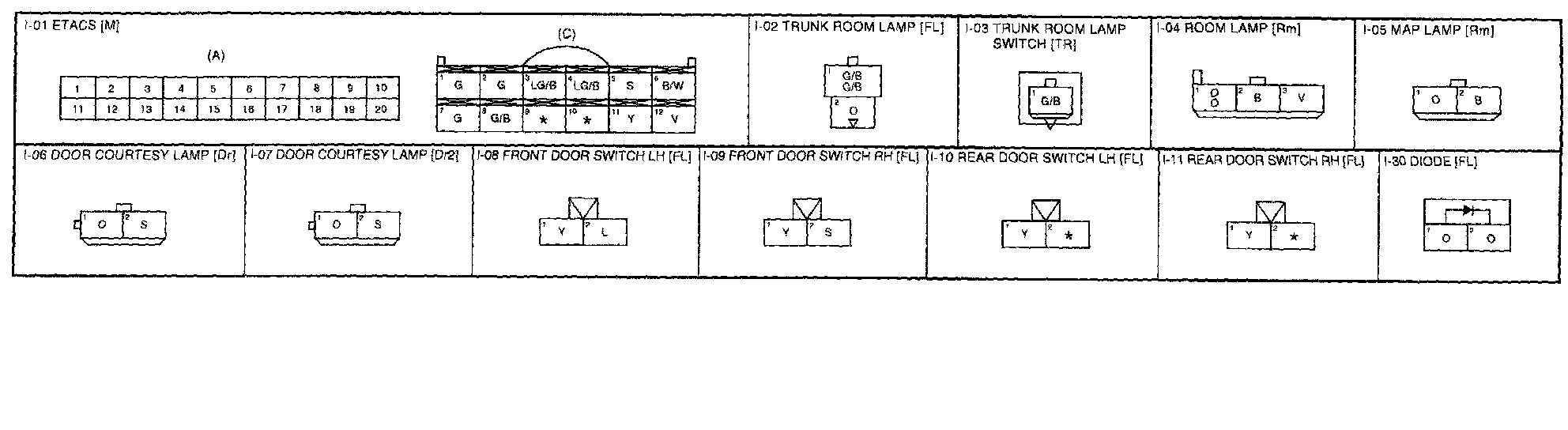 I-1a - Room Lamp, Door Courtesy Lamp, Trunk Room Lamp, ETACS (Electronic Time & Alarm Control System) Connectors: