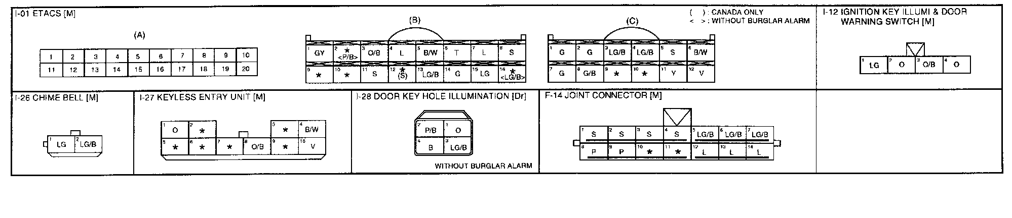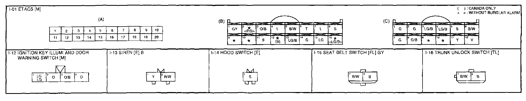 I-1c - ETACS (Electronic Time & Alarm Control System), Keyless Entry System Connectors: