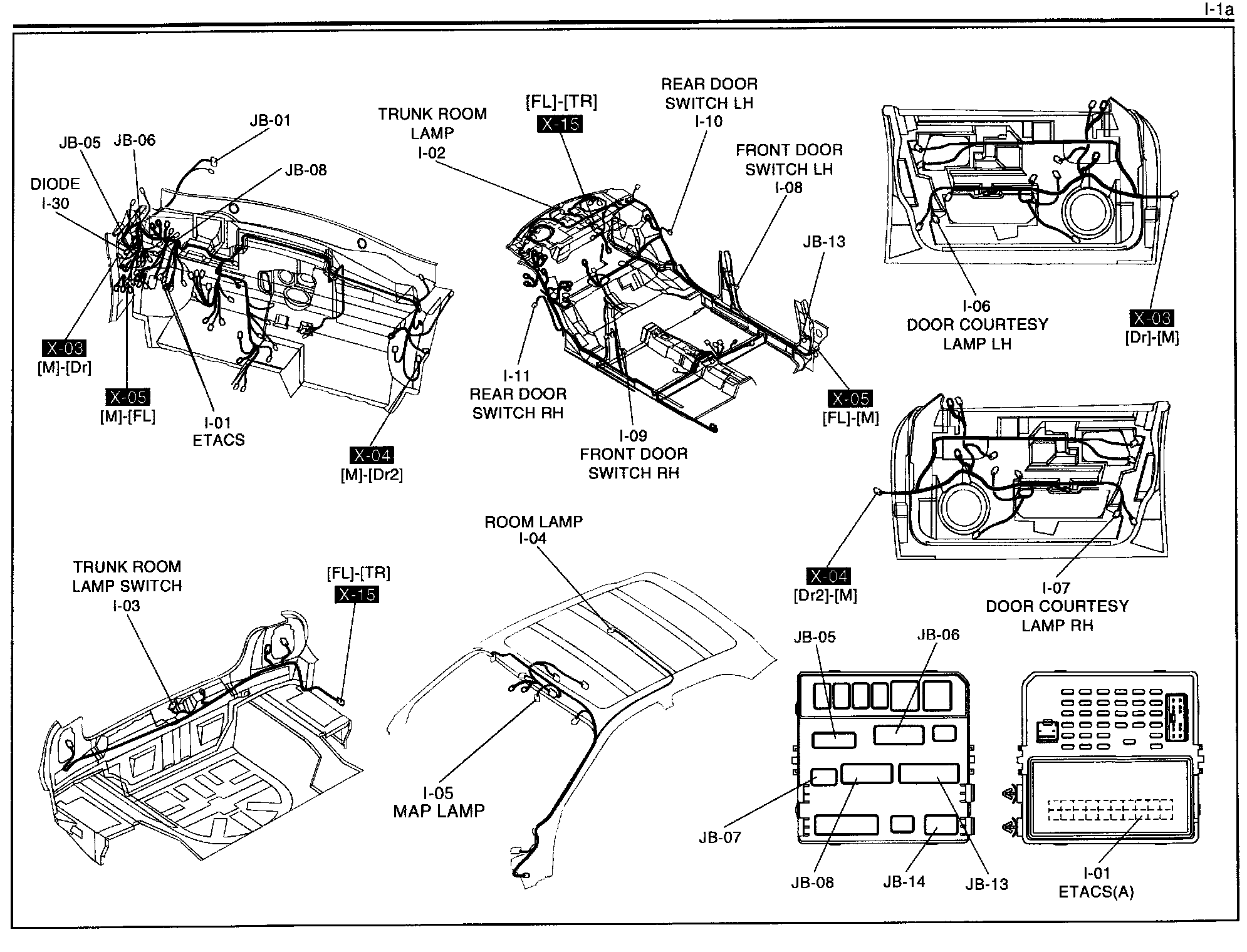 I-1a - Room Lamp, Door Courtesy Lamp, Trunk Room Lamp, ETACS (Electronic Time & Alarm Control System) Harness/Connector Symbols: