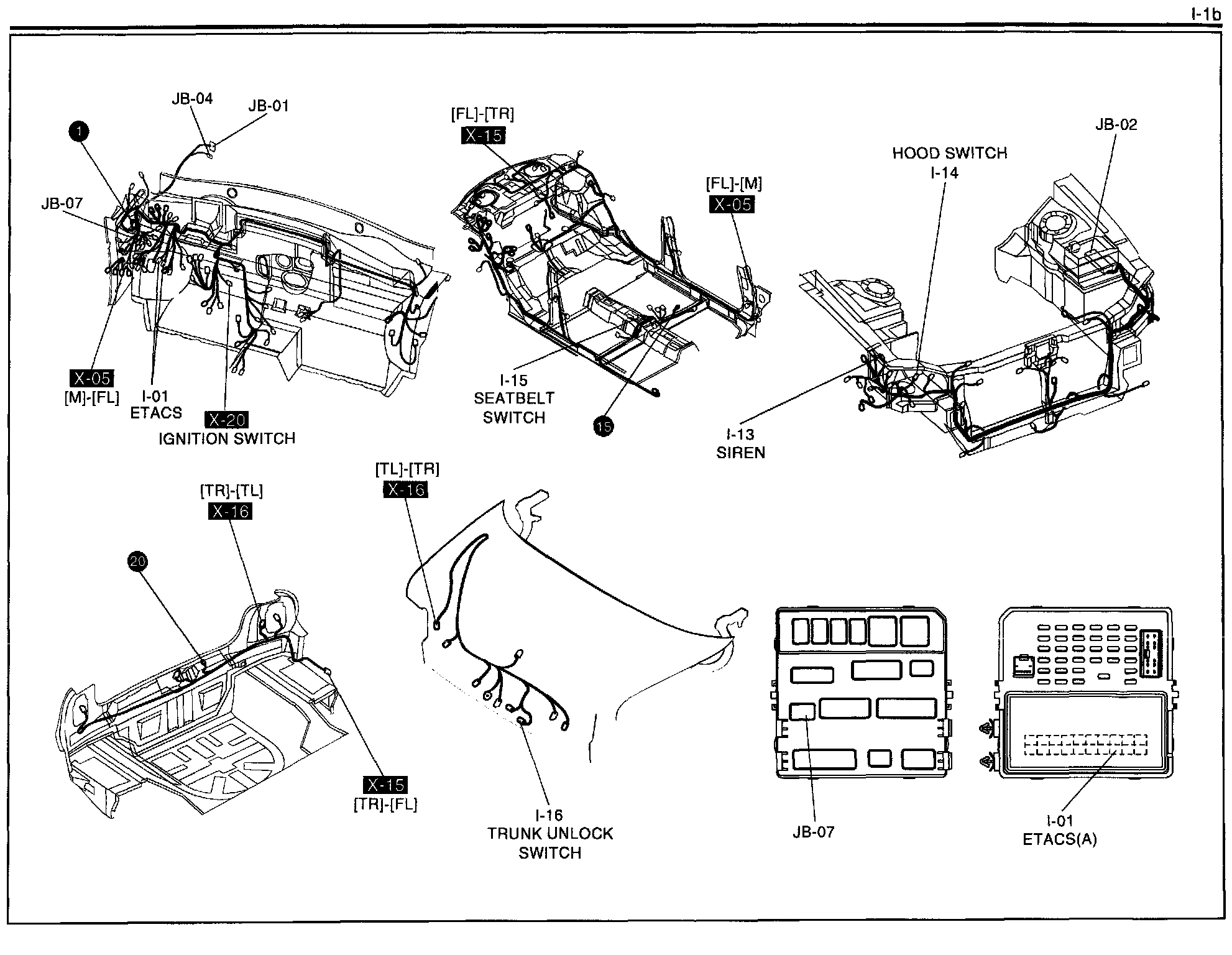 I-1b - ETACS (Electronic Time & Alarm Control System), Hood Switch Circuit Harness/Connector Symbols: