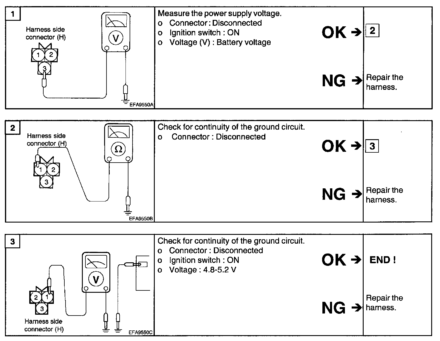 1. It unexpected shocks are felt during driving or the engine stalls suddenly, shake the crankshaft position sensor harness. If this causes the engine to stall, check for poor sensor connector contact.