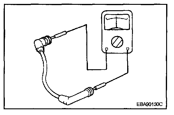 SPARK PLUG CABLES TEST1. While the engine is idling, disconnect each spark plug cable one at a time to check whether the engine's running performance changes or not.