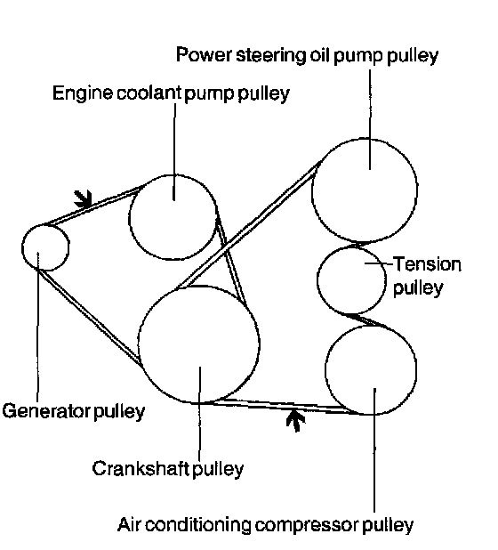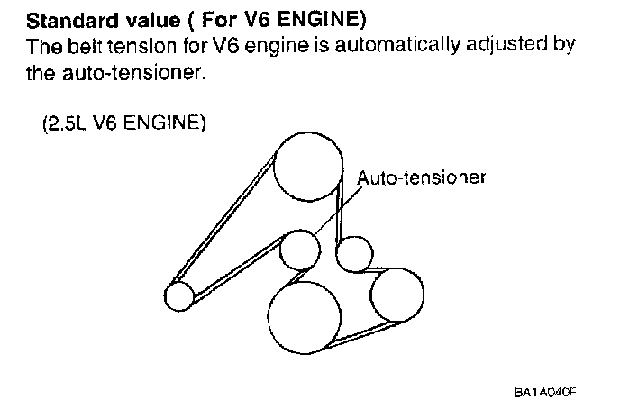 The belt tension for V6 engine is automatically adjusted by the auto-tensioner.