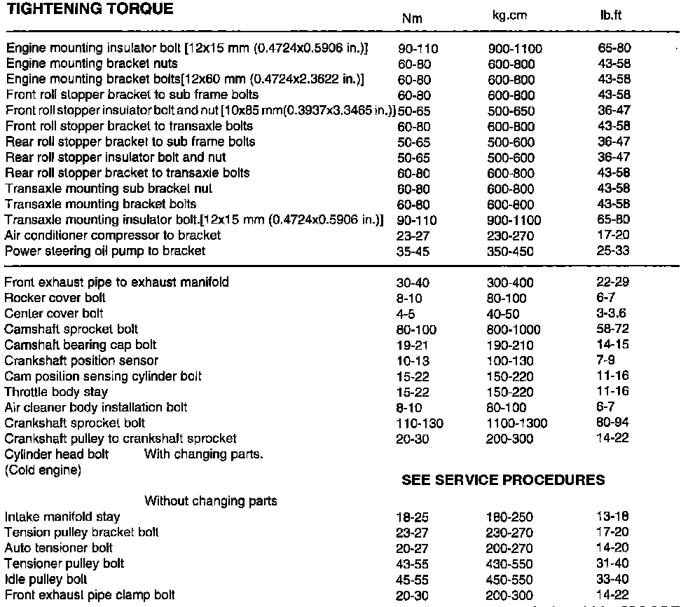 TIGHTENING TORQUE