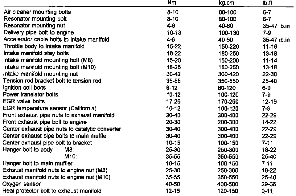 Torque Specifications