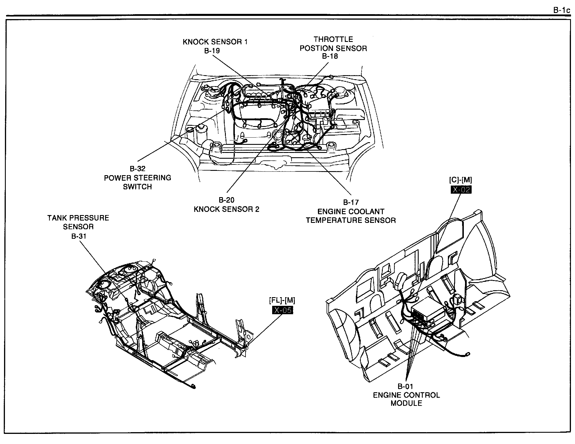 B-1c - Engine Control System (ECM) Harness/Connector Symbols: