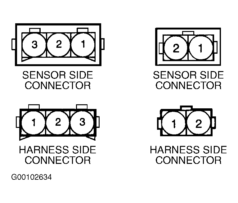 Remove knock sensor from engine. Mount knock sensor in jaws of bench vise. Connect voltmeter between knock sensor connector terminals No. 1 and 2. See Figure. Using hammer, sharply rap on bench vise and check for voltage spike (less than one volt). If no voltage spike is observed, replace knock sensor.