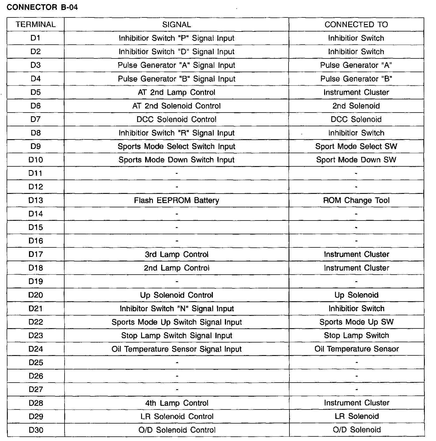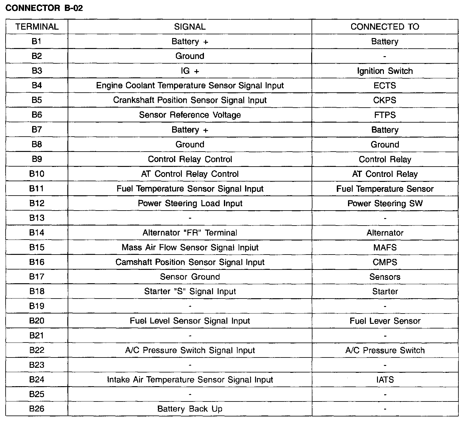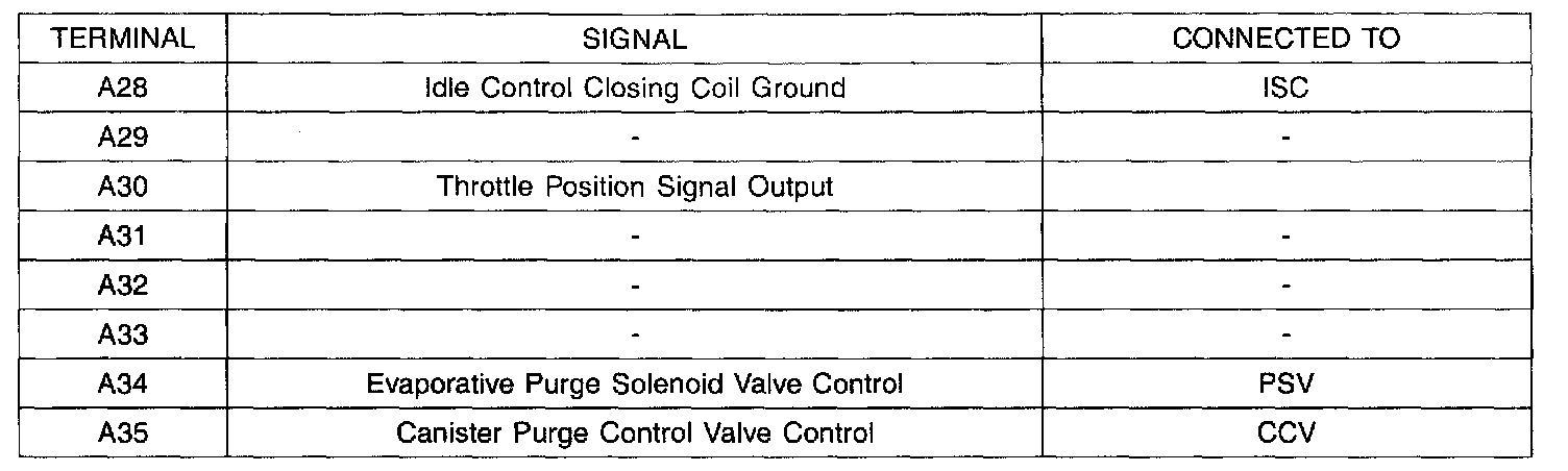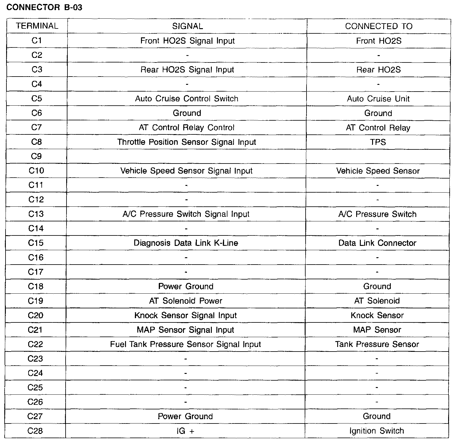 Home >> Kia >> 2003 >> Optima L4-2.4L >> Repair and Diagnosis >> Powertrain Management >> Computers and Control Systems >> Engine Control Module >> Diagrams >> ECM Terminal Layout With TCM