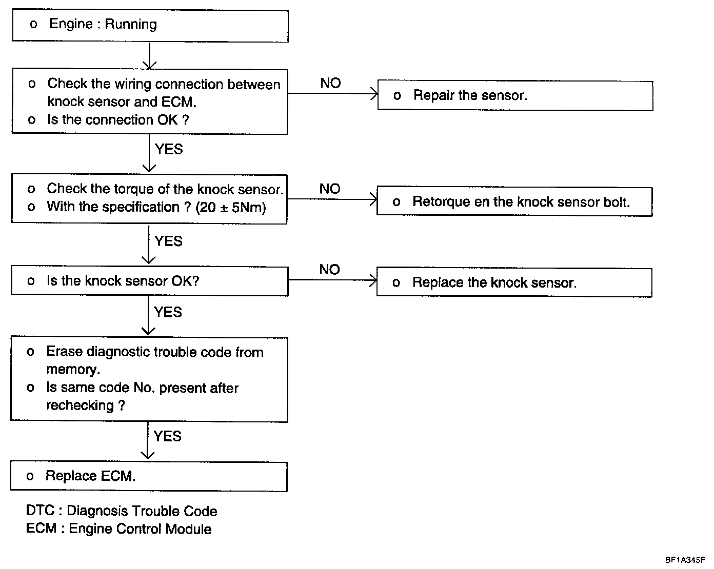 - When the knock sensor signal is not detected though the engine is in the over load condition.