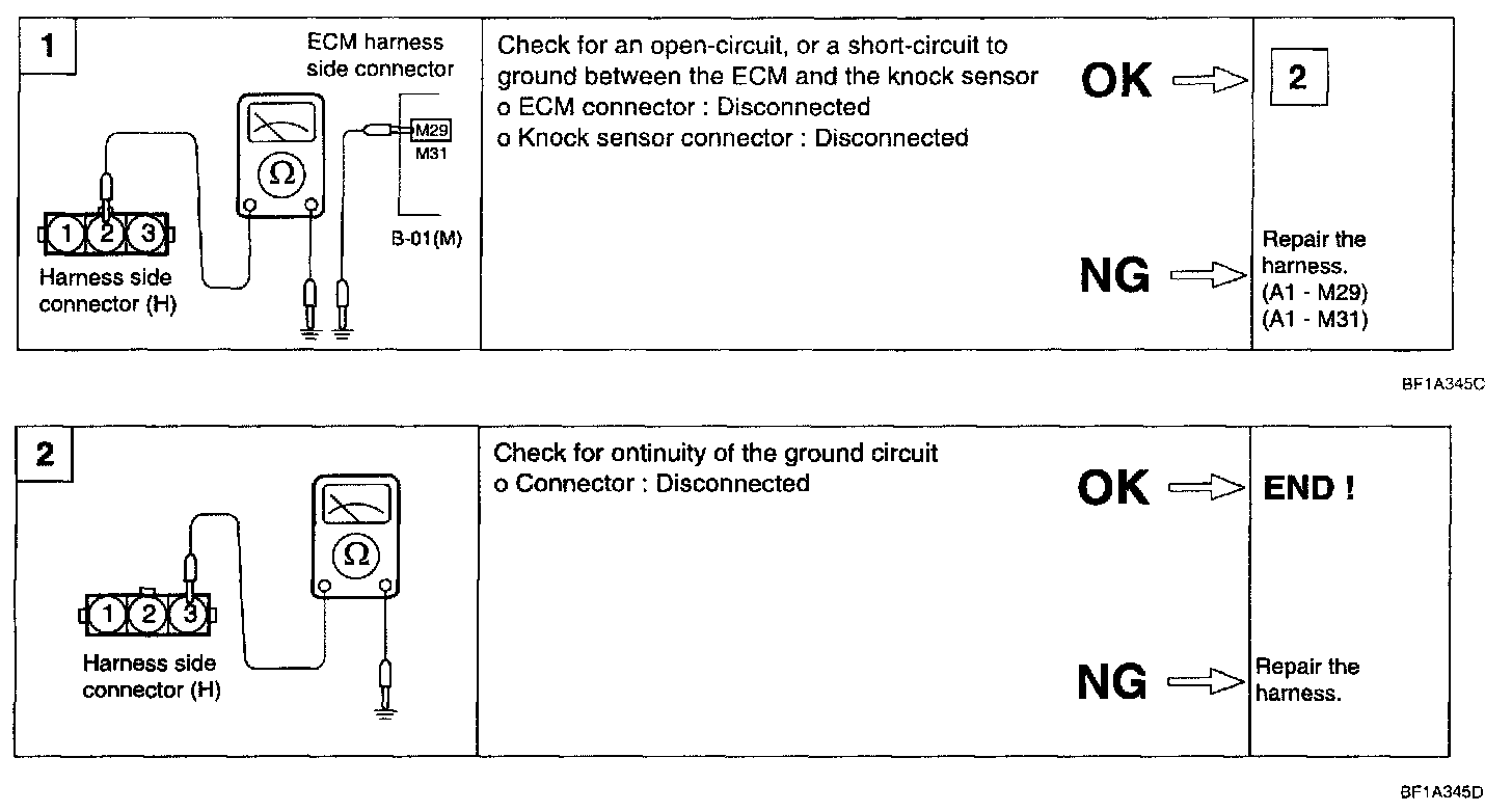 3. If the resistance is continual, replace the knock sensor.